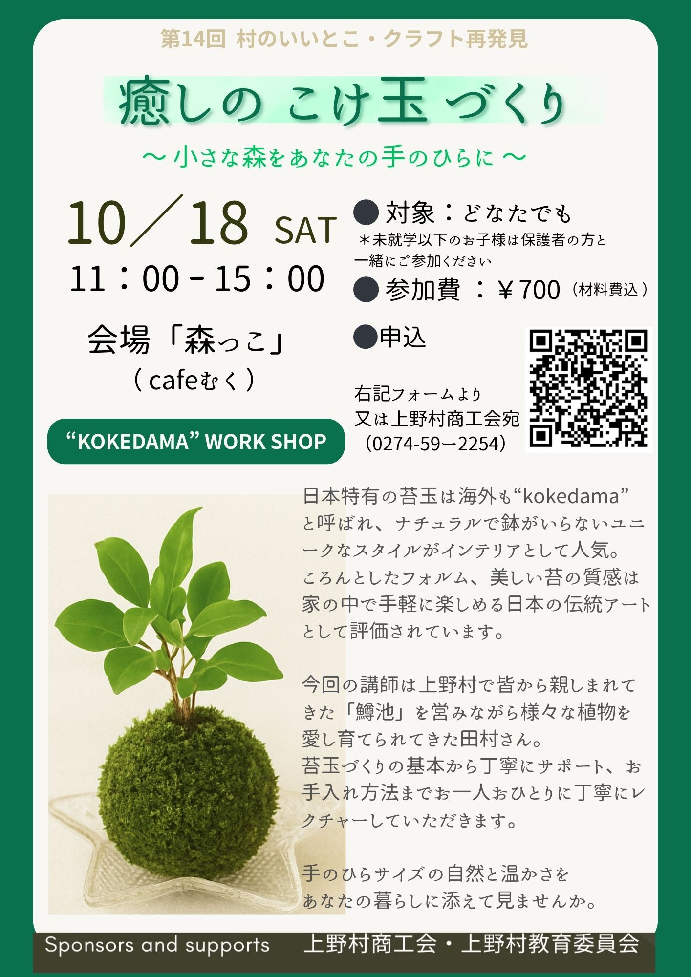 ※こけ玉作りは約1時間程度なので、13:00頃までにお越しいただければ大丈夫です。