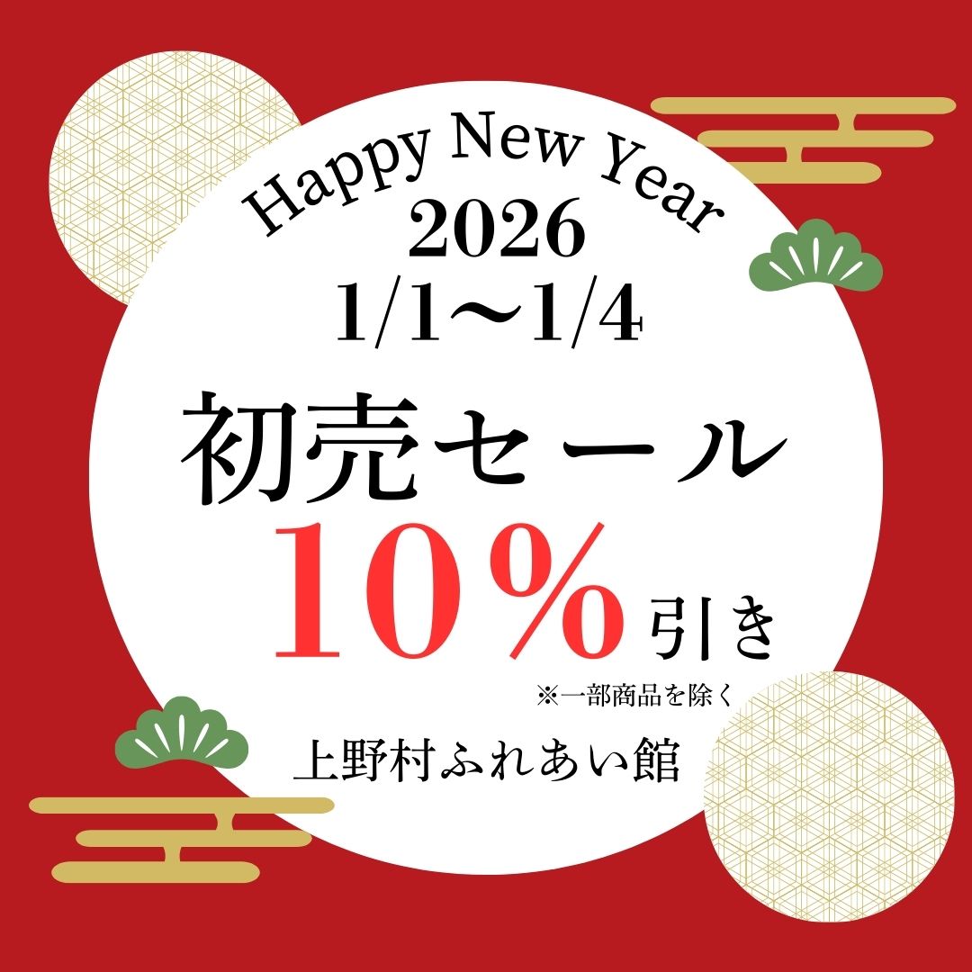 上野村ふれあい館(川の駅上野)は1/1~1/4まで初売りセールを行います。