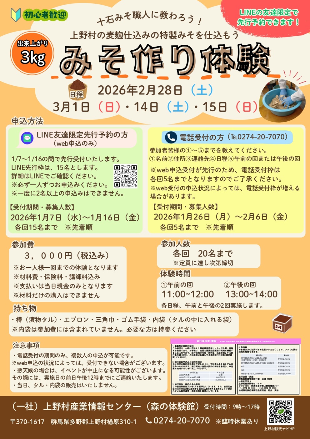 今シーズンも毎回満席の”みそ作り体験”イベントを開催いたします。