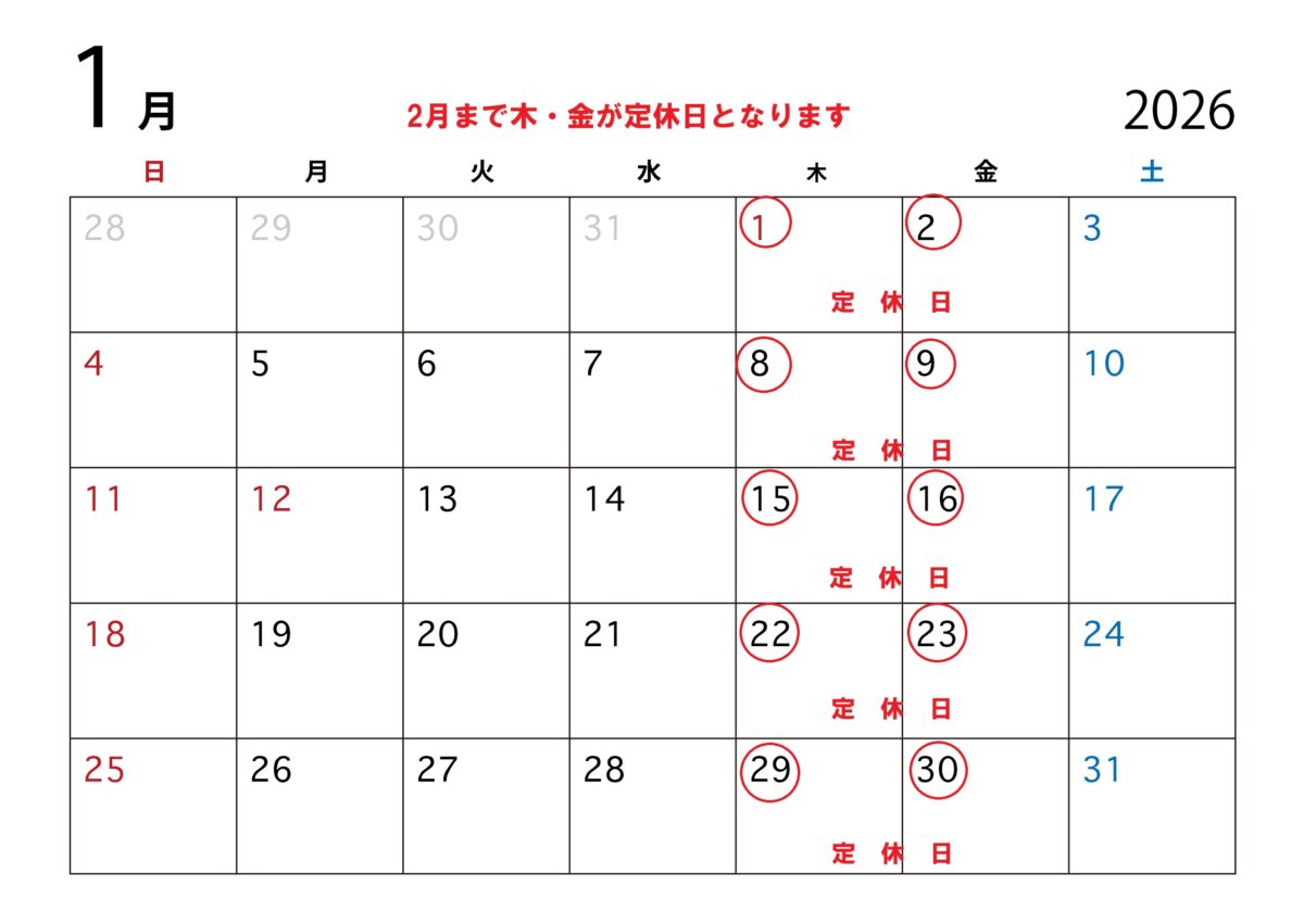 【年始休業】1日(木)・2日(金)