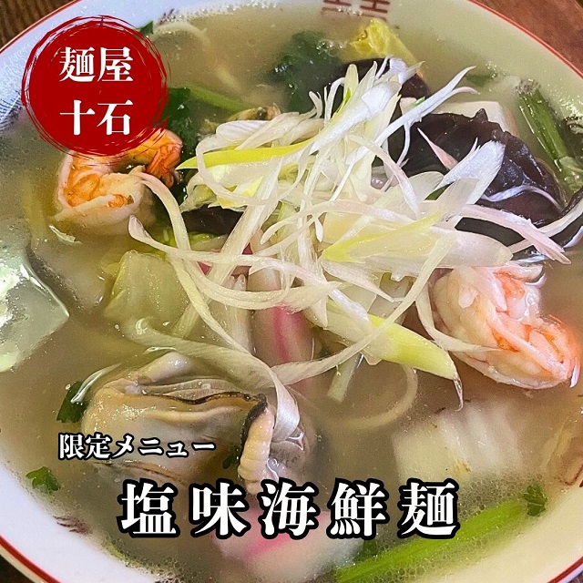 今月も牡蠣・アサリ・イカ・エビと季節の野菜を使用した塩味の”海鮮麺”を限定でご提供いたします。